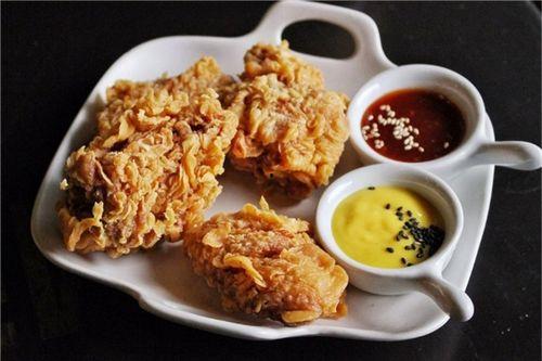 6. 调味:将炸好的鸡肉块放入碗中,加入适量的番茄酱、辣椒酱等调料,搅拌均匀。